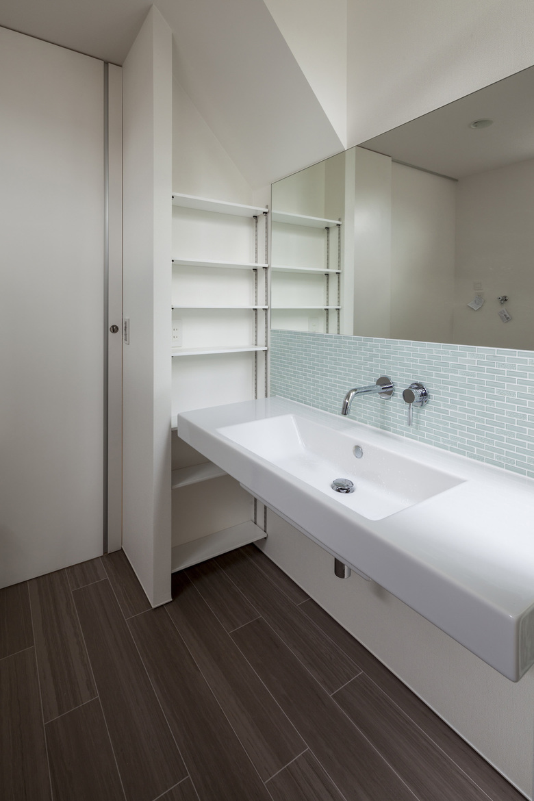 北側の一階という一番環境の悪い場所にあえて LDK を配置し、南側の二階上部の開口部から LDK まで光が通り抜ける断面構成となっている。