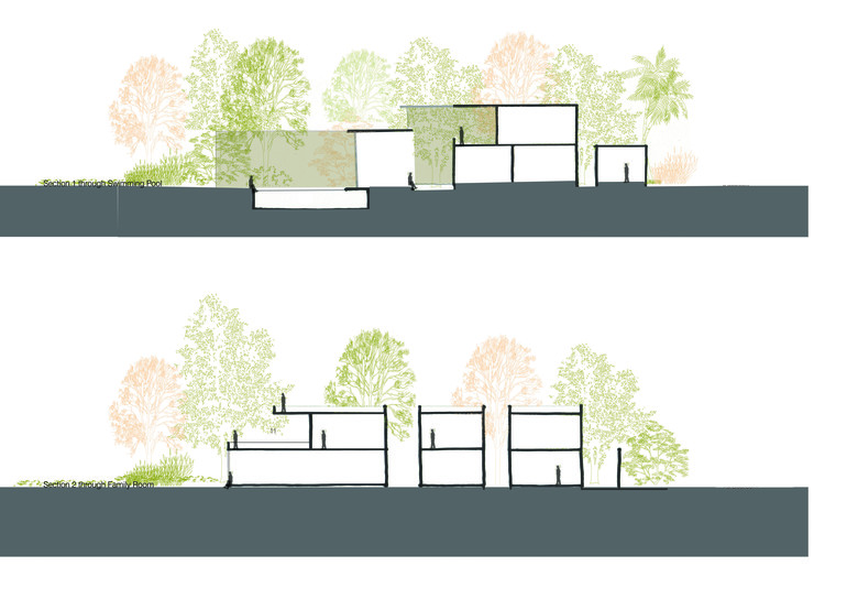 The proposed residence is part of the development of 8 acres of land privately owned by a family in Kotturpuram, in the heart of Chennai. The heavily wooded site on the banks of the Adyar River, also abutted by private paddy fields, offers a rare opportunity to live amidst nature within the hustle of the city. The existing architectural components of the site are the current residence of the family, a number of automobile stalls and servants’ quarters.