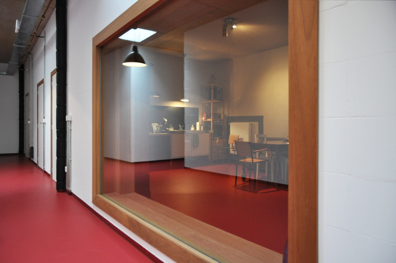 A former carpenters’ shed, centrally located within a block of houses, is converted into a private recording studio (Number Nine Studios), including a control room, a space for theatre rehearsals and spaces for supporting functions. Music is used as a metaphor to structure  the shed and the adjacent garden. A meandering wall, originated from the functioning of an equalizer, forms a continuous movement from inside to outside. The wall organizes the different functions. The challenge was to house music studios for rock bands between the existing houses. This challenge resulted in an interesting interplay between acoustic requirements and architectural solutions. A box-in-box principle guarantees sound insulation. Strategically placed roof lights above the central room bring light in the shed. The different spaces are focused on this lighted area.