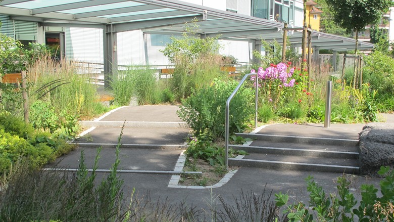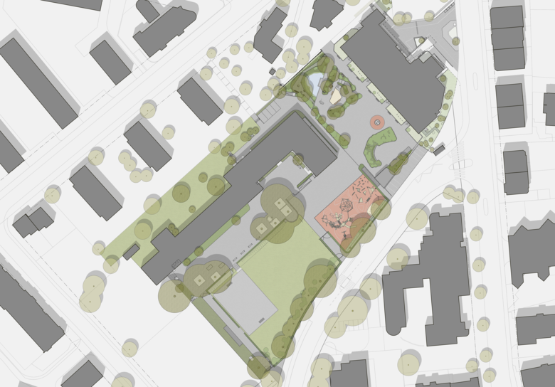 Eingebettet im beliebten Wohnquartier Wollishofen befinden sich die beiden unmittelbar benachbarten Schulanlagen Manegg und die Schule für Körper- und Mehrfachbehinderte (SKB). Das liebevoll detaillierte Schulhaus Manegg aus den 30er Jahren ist denkmalgeschützt. Die Schule für Körperbehinderte zeichnet sich durch Sachlichkeit der 60er Jahre aus. Im Gegensatz zum Schulhaus Manegg war die Aussenanlage vor der Umgestaltung heterogen und überzeugte weitgehend nicht. In der Vergangenheit trennte ein hoher Zaun die beiden Schulanlagen.