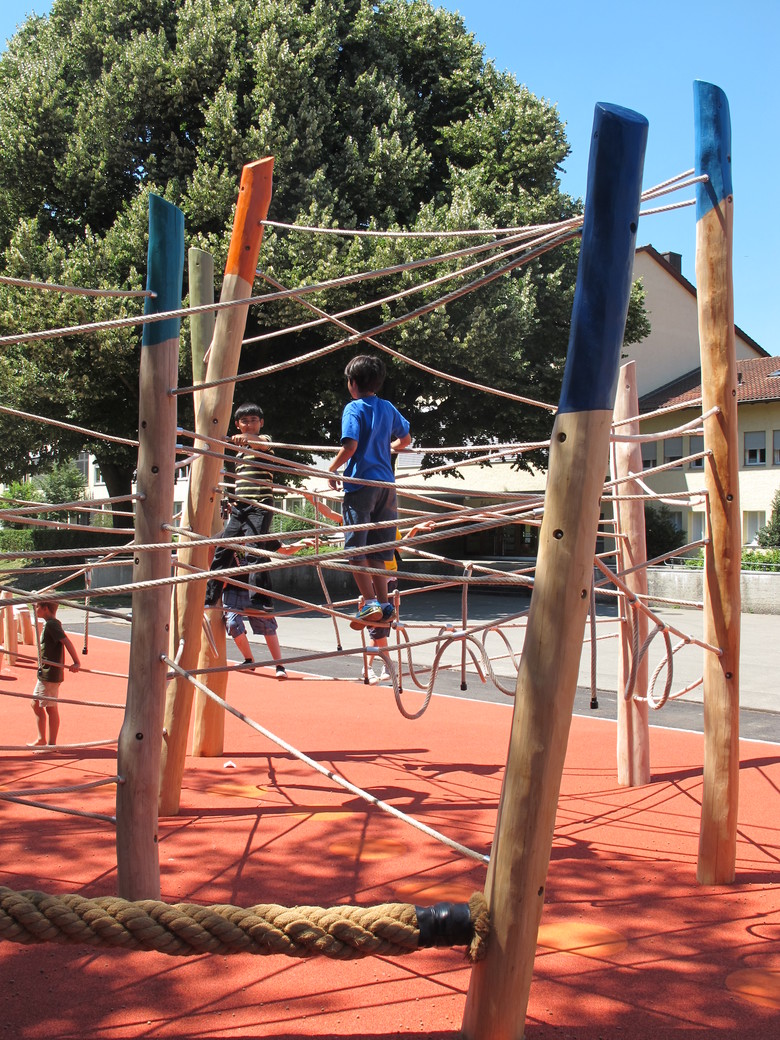 Für einen sicheren Spielbetrieb wurde der angrenzende Hartplatz für Ballspiele in die witterungsbedingt wenig nutzbare Spielwiese verschoben.