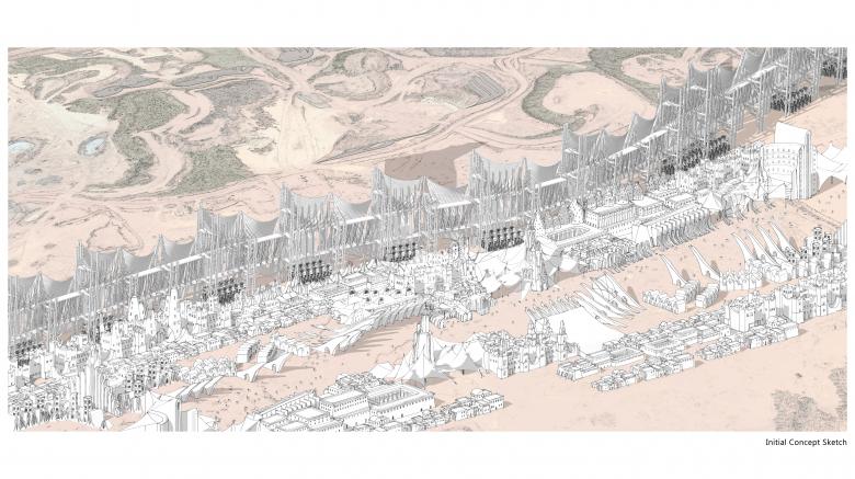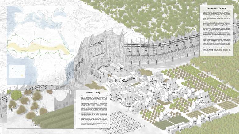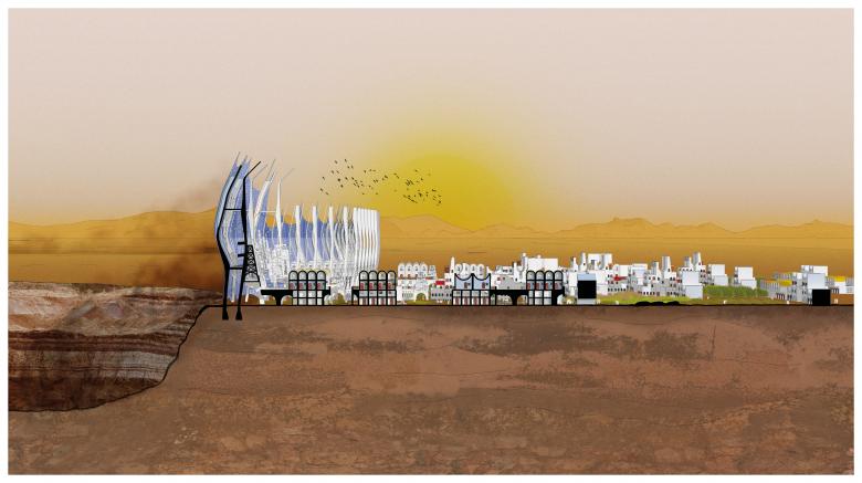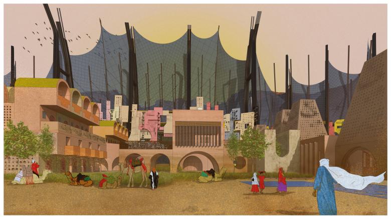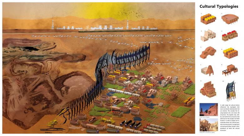 The proposed project aims to revive the historic Tuareg caravan routes that facilitated vital cultural and economic exchanges in the Sahara. Through the construction of a linear caravanserai, the project will pay tribute to these important trade routes while tackling the current issues that the inhabitants of Arlit, Niger, confront. Amid declining economic opportunities, particularly for the youth, the project seeks to celebrate the Tuareg heritage and stimulate economic potential through the revival of traditional crafts like fabric dyeing, metallurgy, jewellery making, and desert farming.
