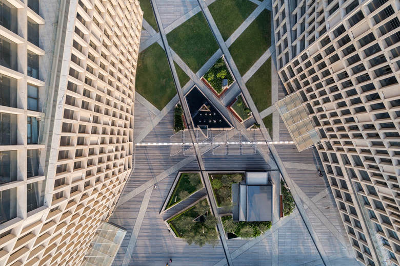 blocher partners india plante eine Business-Landmark am Sarkhej Gandhinagar Highway im indischen Ahmedabad. Der exklusive Mix aus urbaner Struktur und höchsten Ausstattungsansprüchen bietet einen Hafen für die moderne Geschäftswelt Indiens. Die rund 70 Meter hohen Zwillingstürme beherbergen neben großzügigen Büros und Konferenzräumen auch ein Casino und ein exklusives Club House mit Fitnesscenter und Wellness-Bereichen. Die Baukörper selbst spielen mit Zwischensprüngen und verschobenen Elementen, die urbane Dynamik zelebrieren. Die Fassade: ein Raster aus offenen, halbtransparenten und geschlossenen Rechtecken. Je nach Tageszeit wirft die Sonne unterschiedliche Schattenbilder auf die Gebäudehülle und lässt sie lebendig wirken. Durch das vielschichtige Design verspricht das Ensemble schon von Weitem Exklusivität. Mit den Mondeal Heights entsteht ein Businesscenter von internationalem Rang, das einen neuen Akzent in der 6-Millionen-Einwohner-Metropole setzt.