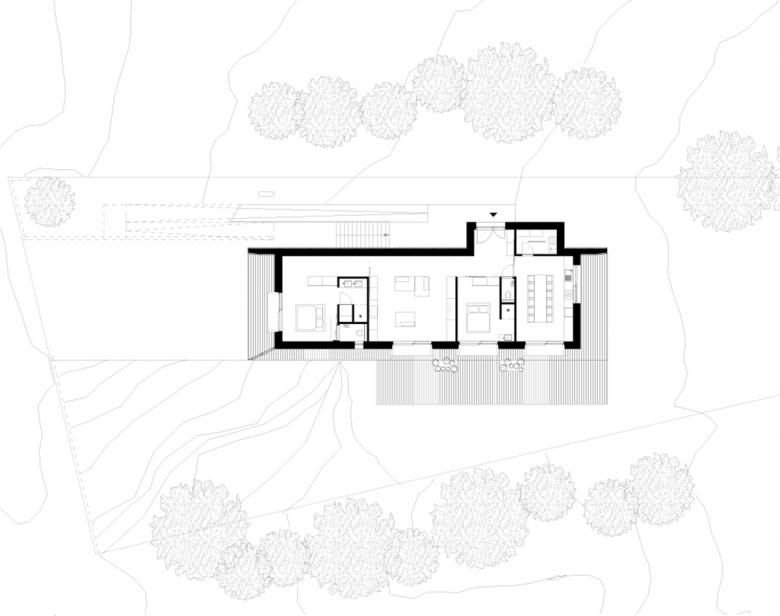Die Auftraggeber erbten ein Waldgrundstück mit einem ziemlich verfallenen Häuschen darauf. Sie waren auf der Suche nach einer angemessenen und leistbaren Lösung, um ein generationengerechtes Gebäude zu errichten. Es sollte sich an unterschiedliche Lebensbedingungen anpassen können und individuellen Vorstellungen von einer nachhaltigen Lebensweise gerecht werden. Das tragende Element ist Holz von lokalen Firmen und Decken, Wände sowie die Tragstruktur bedienen sich des Naturstoffes. Im auskragenden Gebäudeteil bietet ein vorgelagerter Balkon einen weiten Ausblick auf den Wienerwald. Das Haus K stellt eine besonders kosteneffiziente und nachhaltige Lösung für ein Einfamilienhaus dar.