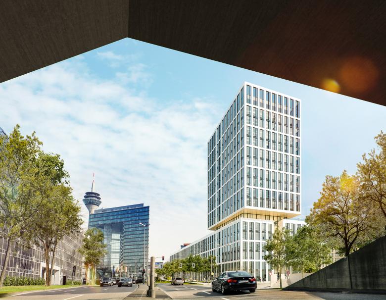 In Unterbilk, genau an der Schnittstelle zwischen dem funkelnden Medienhafen und dem historisch gewachsenen Lorettoviertel, zwischen Alt und Neu, zwischen großstädtisch und bürgerlich liegt das ehemalige Siemens-Areal. In der Ende 2016 durchgeführten Mehrfachbeauftragung wurde unser – mit hohem Anspruch an Architektur und Freiräume entworfenes – Konzept für den Neubau eines Hochhauses und die Entwicklung eines gemischt genutzten Quartiers mit dem 1. Preis ausgezeichnet. Mit dem Grundgedanken, das Umfeld mit der Schaffung einer lebendigen Nachbarschaft zu arrondieren, haben wir bestehende und gewachsene Qualitäten aufgenommen und daraus eine aus zwei sechs- bis siebengeschossigen Blöcken zusammengesetzte städtebauliche Figur entwickelt. Wir erzwingen kein eigenes, ortsfremdes Raster für Gliederung und Anbindung, sondern orientieren uns im Sinne einer sensiblen Stadtreparatur in Lage und Ausrichtung an den historischen Achsen und Grünräumen. Ein wesentliches Element dieser aus den Gegebenheiten des Ortes entwickelten Struktur ist der breite, von Süd nach Nord verlaufende Boulevard, ein qualitätvoll gestalteter grüner Freiraum, der an seinen beiden Enden in einen öffentlichen Platz mündet.