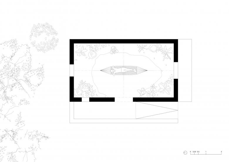 Das undichte Dach wurde nicht ersetzt. Stattdessen wurde ein Ringanker aus Beton aufgesetzt und der Innenraum zum Himmel geöffnet. Gemeinschaftlich wurden Blumen, Kräuter, Büsche und Bäume gepflanzt, die zu unterschiedlichen Jahreszeiten blühen. In der Mitte des begrünten Hauses wurde eine Hängematte an Seilen befestigt, die durch vier Steine in Balance gehalten wird. Dieses Gleichgewicht symbolisiert die Gewinnung von grüner Energie aus Windrädern, Wasserkraft-, Biogas- und Photovoltaikanlagen in Korbach. Aus diesen Quellen werden zurzeit 80 Prozent des Stromes vor Ort gewonnen. Der Durchschnitt in Deutschland liegt bei nur ca. 45 Prozent. Der Pavillon soll zeigen, dass es 100 Prozent werden müssen, um in Balance mit der Umwelt zu leben.