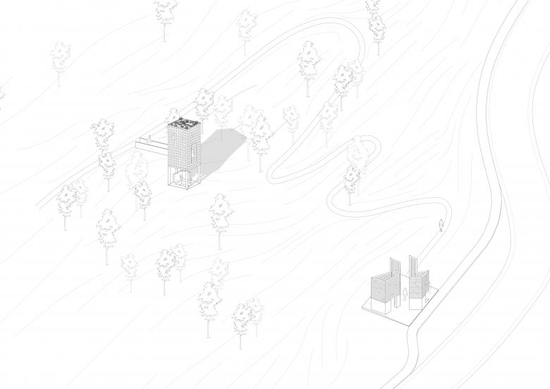 In unmittelbarer Nähe zur Unterholz Installation befindet sich der 20 Meter höher gelegen Open Mind Place Oberholz. Auf einer Unterkonstruktion aus sechs Betonstützen wurden Eichenschwellen zu einem Raum der Begegung aufeinandergestapelt. Der Innenraum ist über eine kleine Brücke zugänglich und bietet Platz für bis zu sechs Personen. Die erhöhte Position erlaubt eine weite Aussicht über das Dorf und die Hügelkette im Süden mit der Heidenstraße. Oberholz ist für viele Menschen ein beliebter Ort, um zu entschleunigen und um sich mit anderen Menschen auszutauschen.