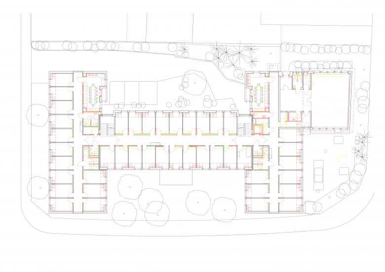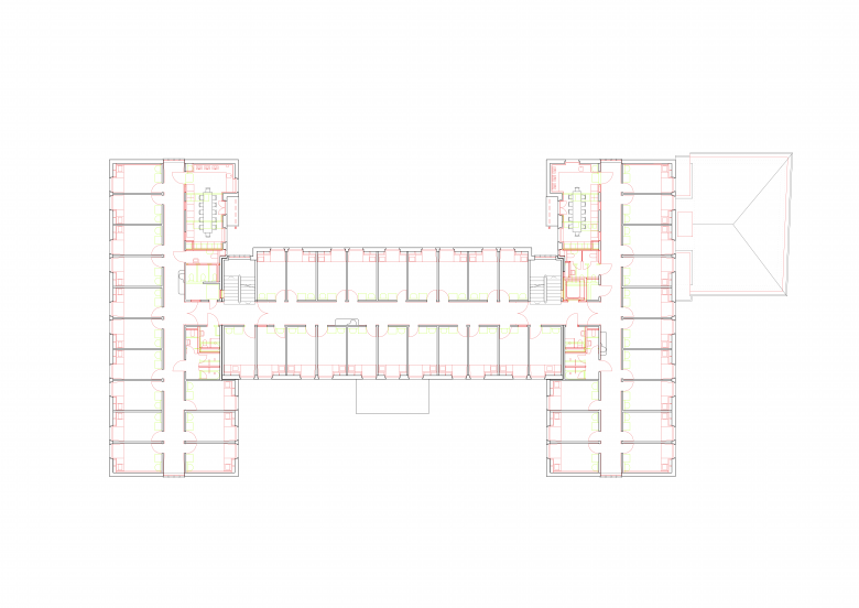 134 Zimmer, Sanitärräume, Freizeitraum und Gemeinschaftsküchen, Büros. Umsetzung behördliche Auflagen: Gebäudehülle, Asbestsanierung, Erdbebensicherheit, Brandschutz, Hindernisfreiheit.