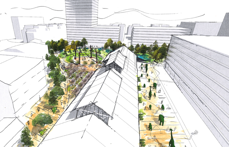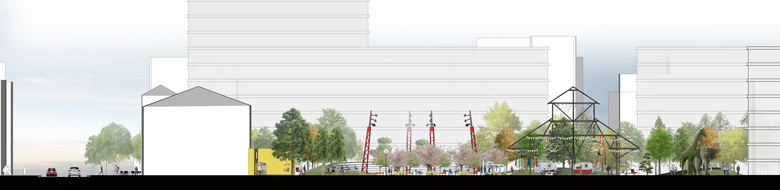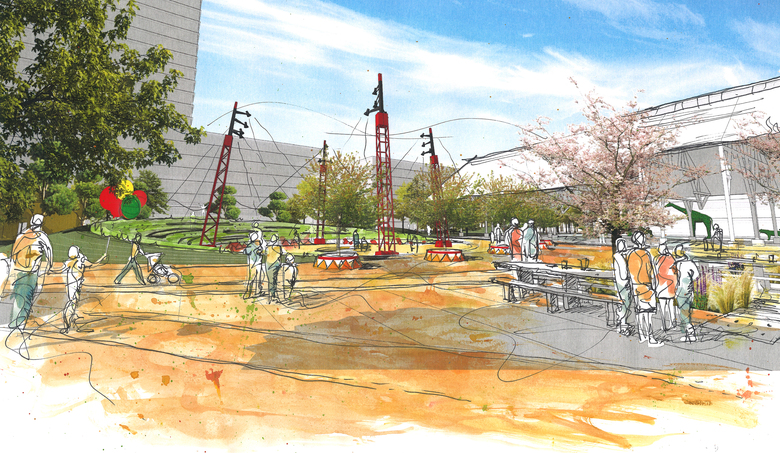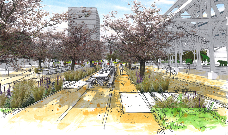 Ein Bus auf Schienen hilft Bauteile bewegen.
