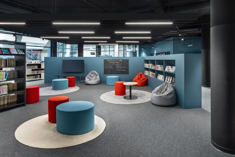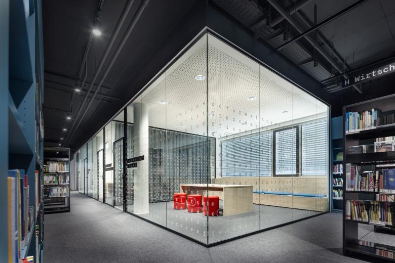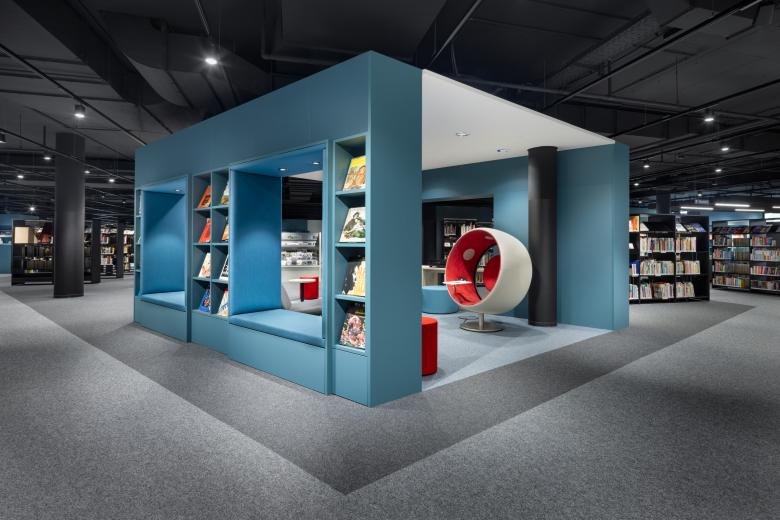 Das Designkonzept entspricht den heutigen Anforderungen an Wissensvermittlung und hybriden Nutzungsmöglichkeiten. Auf rund 3.500 Quadratmetern verteilt auf zwei Geschossen hat DIA Rückzugsorte, Gemeinschaftszonen, Bereiche für multimediales Lernen, Veranstaltungen sowie Büro- und Besprechungsräume geschaffen. Ein integrierter Kinder- und Jugendbereich mit Online-Angeboten, Spielen und Zeitschriften ist ein Erlebnisraum für die ganze Familie – und bildet eine Brücke zwischen digitaler und analoger Welt. Der Bibliothek übernimmt eine wichtige soziale und kulturelle Funktion, indem sie eine Plattform zum Austausch und zur Vernetzung für eine breite Öffentlichkeit bietet.