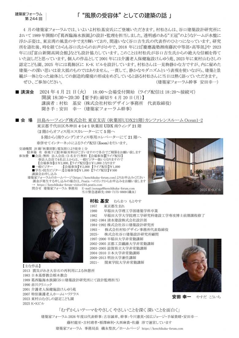 村松基安 “風景の受容体”としての建築の話/建築家フォーラム