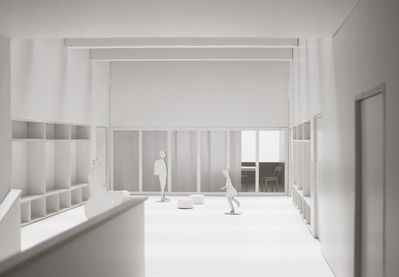 Die Unterrichts- und Therapieräume gruppieren sich zu drei Clustern mit unterschiedlichen räumlichen Situationen. Drei unterschiedliche Tageslichtsituationen verleihen den Bereichen eine Einzigartigkeit und schaffen neben räumlicher Vielfalt auch Orientierung. DIe Vorbereiche bieten Spiel- und Arbeitsmöglichkeiten in einem geschützten und räumlich gefassten Bereich.