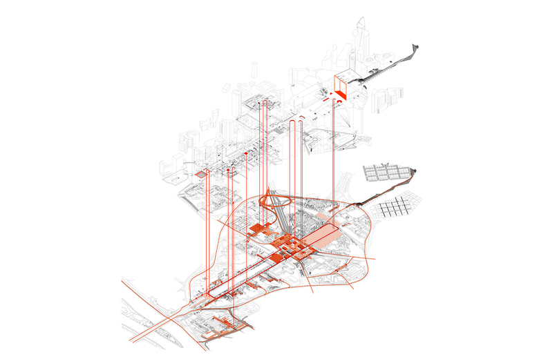 This plan also envisions the long-term evolution of the site and identifies possibilities to extended infrastructure to adjacent neighborhoods. Guiding principles for design include: (1) redefining the ground (through interventions on the slab), (2) reestablishing the grand axis, (3) inhabiting in-between spaces, (4) allowing for a natural invasion, and (5) incorporating shared spaces.