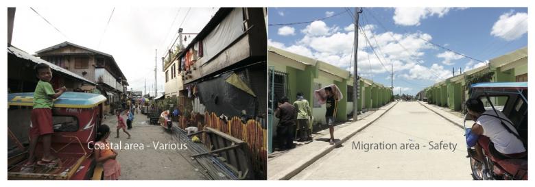 The typhoon and tsunami swallowed poor living area and they were ordered by goverment to relocate as no-living area. But they had nowhere to go, not long after the disaster, began to rebuild the living space that had been swept away. Four years passed, the coastal town has regained the life before the disaster. At the same time, the residents began to move to the village government constructed with concrete far from the city. This village is a newly built village with 1,000 households that has been carved out of the mountains. I lived both area to experience local life as architects by having their meal, sleeping their house. In the life spend there, migration area got material wealth but they lost mental wealth.