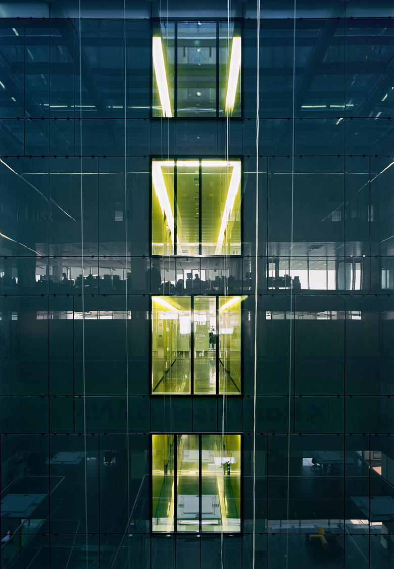 Um in den Grundrissen maximale Flexibilität zu erreichen, wurde über die gesamte Bebauung ein klar definierter Raster gelegt. Die auf 8 Stockwerke aufgeteilen Departements können in sinnvolle Gruppen zwischen 200m² und 600 m² flexibel eingeteilt werden. Viel Glas und hochwertige Materialien schaffen größtmögliche Transparenz und Qualität in den Büroräumlichkeiten. Das Atrium dient bis zur Hälfte des Gebäudes als überdachte, lichtdurchflutete Eingangshalle. In den oberen Geschoßen liegen hier attraktive Arbeitsbereiche.