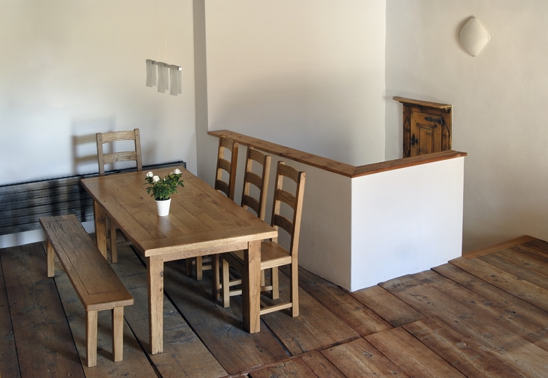 Umbau eines ehemaligen Engadiner Bauernhauses. Der Heustall wurde in den 80er Jahren des 20. Jahrhunderts umgebaut. Der Wohnteil wurde dem heutigen Standard angepasst. Im Dachgeschoss entstand eine Laube mit einem Glasboden, um das darunterliegende Büro zu erhellen. Ein Dachfenster bringt Licht bis in den Sulèr. Eine Dachlukarne erhellt das Elternschlafzimmer.