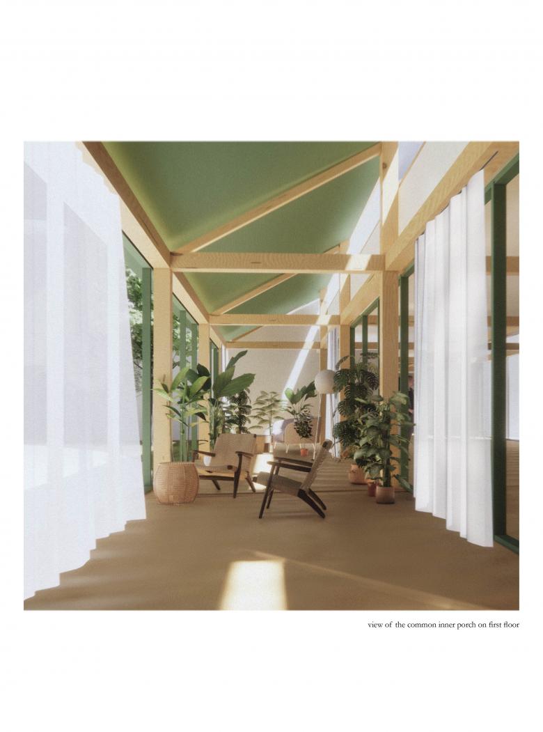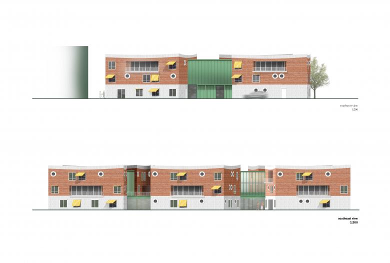 "The thesis builds on a pre-diploma project that explores the differences between different types of elderly care. Ibid, where meaningful, it proposes to combine the different types of care into a coherent whole - a stable home. This offers continuity of care, permanence of relationships between clients and with staff and the constancy of the environment.