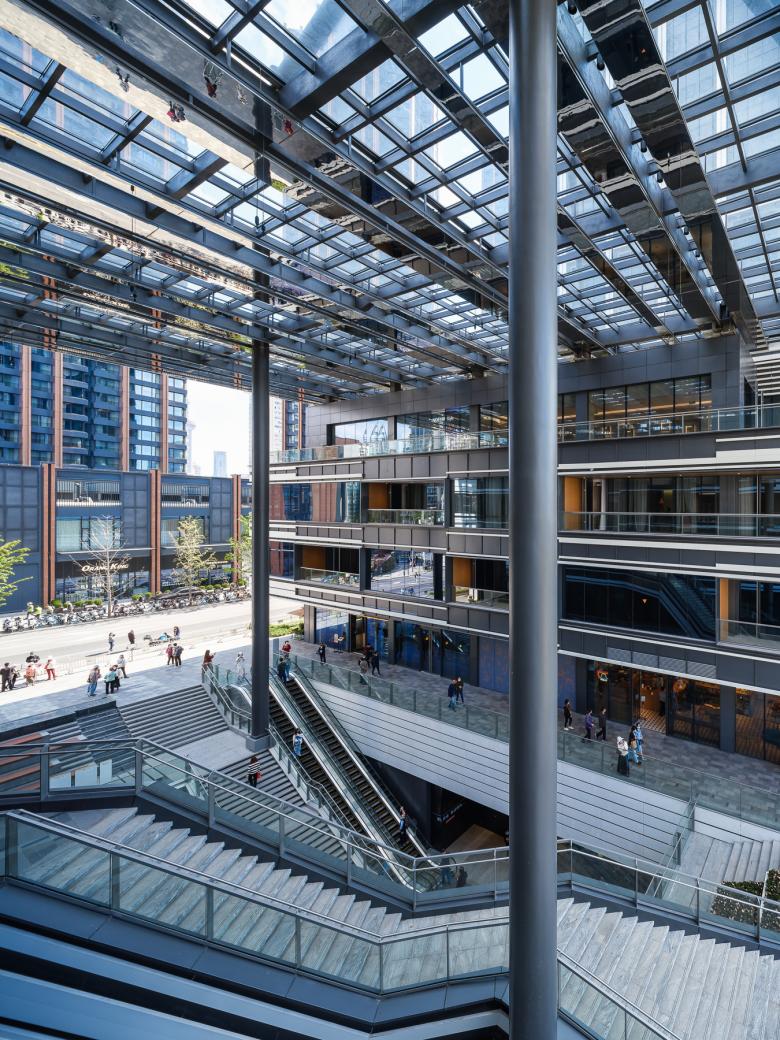 Rounding out Kokaistudios’ recent Suhe MixC World in Shanghai which comprises a commercial space within a brand new green land, this mixed-use building contextualizes the project into its urban and green surroundings and elevates its presence in the city, all the while complementing and echoing neighboring architecture of the landmark tower.
