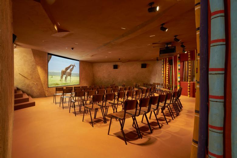 Auf rund 55.000 m2 entsteht im Zoo Zürich die neue Lewa Savanne - eine Landschaft nach kenianischem Vorbild, in der Giraffen, Nashörner, Zebras, Antilopen und Strauße frei zirkulieren. Die zentrale Savanne wird durch einen Niveauversprung flankiert, der eine natürliche Barriere für die Tiere und einen erhöhten Standort für die Gäste bietet. Diese Hangkante leitet den Besucher entlang diverser Tieranlagen und gastronomischer Einrichtungen bis zum Giraffenhaus. Das enorme Gebäudevolumen von ca. 2.300 m2 Grundfläche und einer Raumhöhe von über 10 m wurde aus der steilen Hanglage heraus entwickelt und so diskret in die Landschaft eingebettet. Der Gast erlebt auf verschiedenen Niveaus eine spektakuläre Felslandschaft, die von einem 1.400 m2 großen, stützenfreien Glasdach überspannt wird. Eine transluzente Membran verbirgt das filigrane Tragwerk und sorgt für ruhiges, diffuses Tageslicht. Die Fassade wird zur Landschaft, das Dach zum Himmel. Grenzen zwischen innen und außen verschwimmen.
