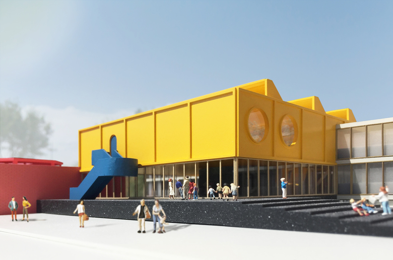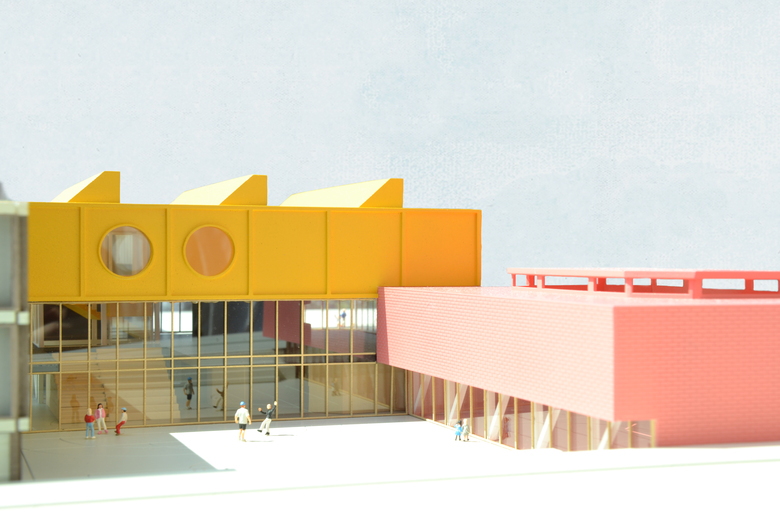 Initially conceived as an isolated element of the city, as a series of undifferentiated spaces, the Enrico Fermi school is redesigned in order to dissolve borders between the city and the school ensuring a dialog between didactic and experience, indoor and outdoor spaces, artificial and natural environment. The school, placed in the heart of the city, becomes the stage where students, workers and citizens can identify themselves through a sequence of different spaces and materials making them live in a harmonious relationship. The “Cantiere Cultura”, thanks to its iconic image, set itself as a cultural center, pivot of a dynamic and lively landscape. The project revamps the elements of the historic and cultural heritage of the neighborhood and presents itself as a landmark whose features are balanced against the immediate urban surroundings.