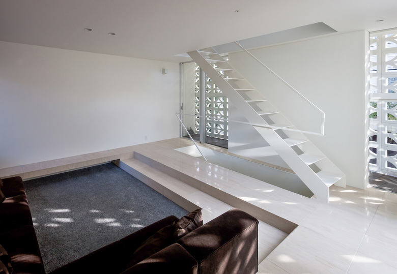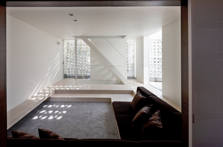 A wind, the wet and nature such as the sun and the sky are being dragged into indoor deeply through the star block which becomes a facade and each opening facing the courtyard. It's being dragged into indoor deeply through a light screen, courtyard space roofless and that. A hierarchy in a light screen, courtyard space roofless and the space where that's being circled and continued for a boomerang person is distributed step by step. I break the afternoon sun hotter for summer than a light screen and cool off by the style of the basin from a courtyard. Summer can live comfortably by a barefoot, and a floor of the concrete and the stone which are being used for the 12th floor again achieves the direct gain of the daytime sun in winter. An electric floor heater is installed in the 1st floor and the 2nd floor, but it also becomes possible by an electric floor heater only on the 1st floor than a void of stairs that the 2nd floor is warmed.