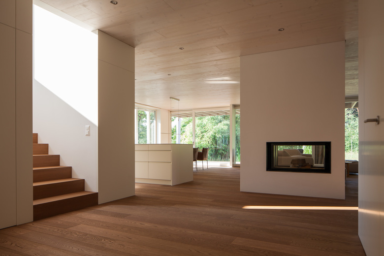 Das Haus liegt der Uferzone des Bielersees. Hohe Bäume und saftige Wiesen sowie saisonale Überschwemmungen erzählen von der Nähe zum See. Es ist in enger Verbindung zur umgebenden Natur konzipiert und wird zu einem Erlebnisraum der verschiedenen Lichtstimmungen, der wechselnden Wettersituationen und Veränderungen der üppigen Bepflanzung. Für das Haus am Bielersee haben wir 2016 den Publikumspreis für Das beste Einfamilienhaus der Schweiz erhalten und eine Auszeichnung für die Häuser des Jahres, ausgelobt in Österreich, der Schweiz und Deutschland.
