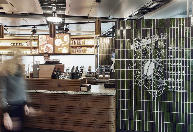 Die zentralen Elemente des architektonischen Konzepts sind Übersichtlichkeit und Verweilqualität. Dafür sorgt unter anderem die klare Trennung des Angebots- und Sitzbereichs, wobei beide Bereiche optisch miteinander verbunden werden.