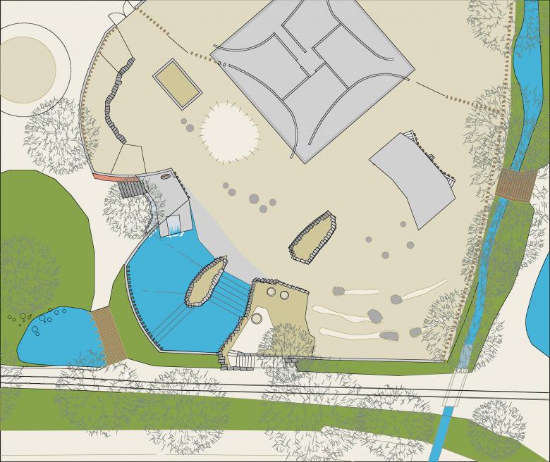 Die Laufgräben sind für die Elefanten benutzbar und verleihen der Anlage eine zusätzliche – topografische Qualität.