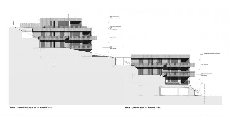 zwei Mehrfamilienhäuser einer Erbgemeinschaft. Die Hanglage mit einmaliger Sicht auf den Obersee verschaffte zwei grosse Vorteile: Aussicht und Gartenzugänlichkeit. Es entstanden eine Attika- und neun Gartenwohungen mit Aussichtsterrassen.