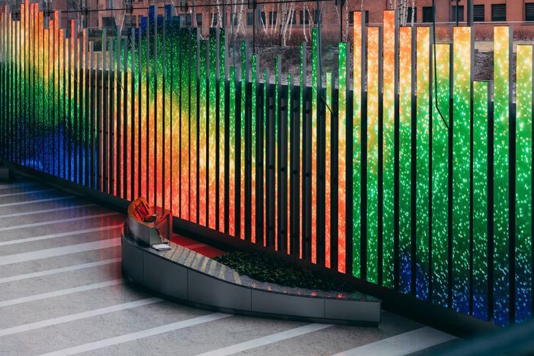 Chicago's 150 North Riverside is a 54-story building designed by Goettsch Partners that opened last year. Gracing its lobby is 150 Media Stream, an installation that displays a rotating selection of digital works by artists.