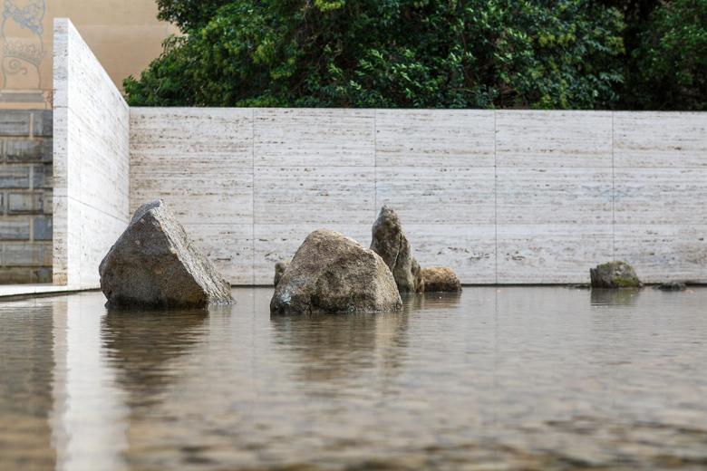 New Yorker Spencer Finch is the latest artist to intervene at the Mies van der Rohe Pavilion in Barcelona. He has placed fifteen rocks in the pavilion's pool, echoing the rock garden at Ryoan-ji in Kyoto, Japan.
