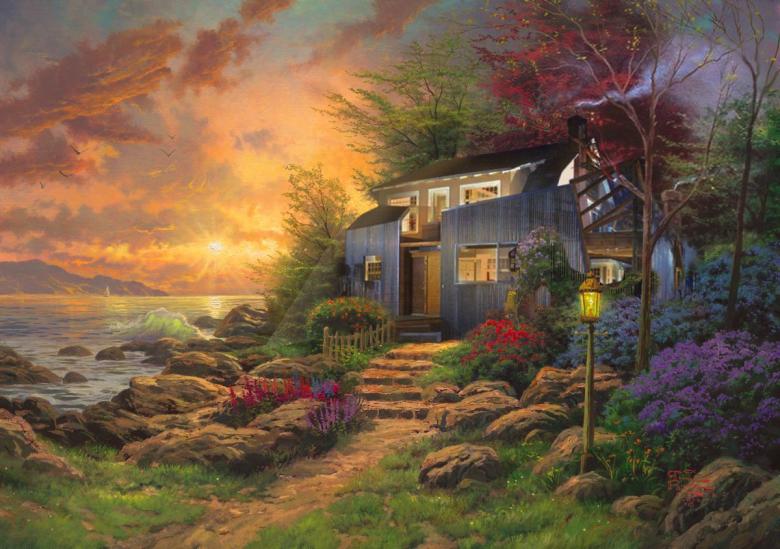 The paintings of Thomas Kinkade – the Painter of LightTM – and icons of modern residential architecture by the likes of Le Corbusier, Mies van der Rohe, and Frank Gehry would seem to be an incompatible mix. But in the hands of @robyniko, a series of Kinkade + Modernism...