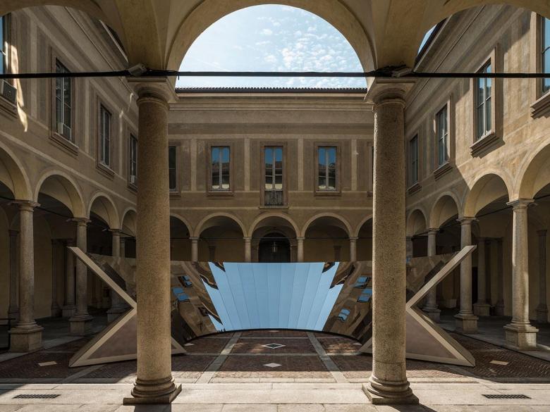 The world of design is focused on Milan this week. As part of the Salone del Mobile, COS's Open Sky installation doesn't reflect a person's new clothes. Instead it mixes the beauty of the Milanese sky with the historic architecture of the Palazzo Isimbardi.