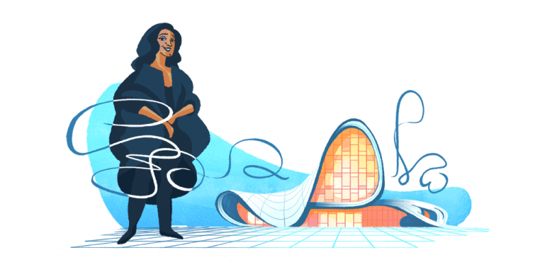 One year after she died unexpectedly from a heart attack at the age of only 65, architect Zaha Hadid has been celebrated with a Google Doodle depicting her firm's Heydar Aliyev Center in Baku, Azerbaijan.