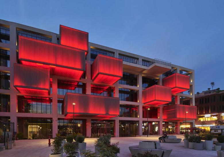 The Novartis Pavillon, a new exhibition, meeting and event center designed by the firm of Michele De Lucchi, recently opened on the Novartis Campus in Basel, Switzerland. A highlight of the campus's first publicly accessible building is its zero-energy media facade.