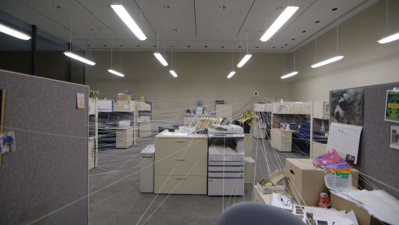 Late last year New York artist Jonathan Schipper installed a generic office space in Rice Gallery in Houston, Texas. Slowly and imperceptibly the cubicles and other office fixtures were destroyed via cables and a mechanical winch. A new film by Walley Films reveals the destruction.