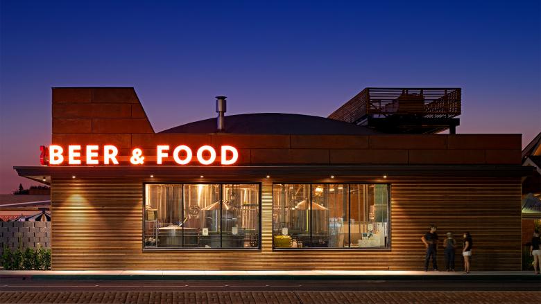 A historic Craftsman home, a former grocery story, and a half-dozen repurposed shipping containers combine to create a destination for beer drinkers in Anaheim, California. Outdoor spaces are also part of the mix in Studio One Eleven's design for Moderntimes and Leisuretown. The architects...
