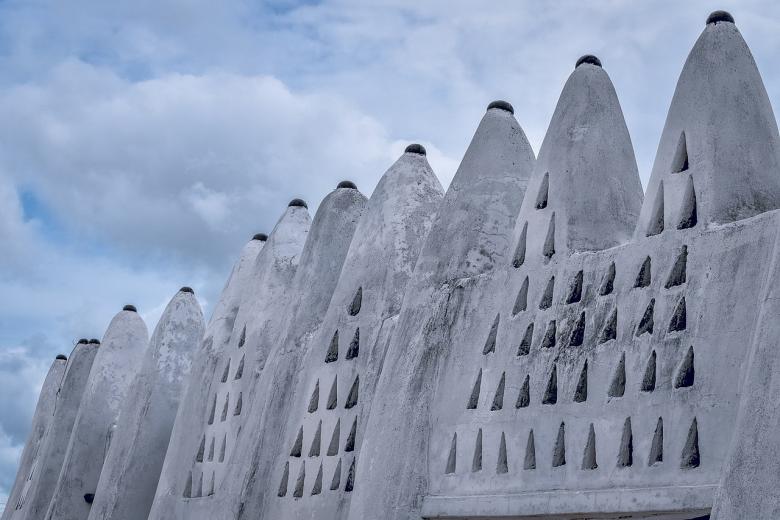 Frequency with which the Great Mosque in Djenné, Mali, is freshly plastered in mud: Yearly