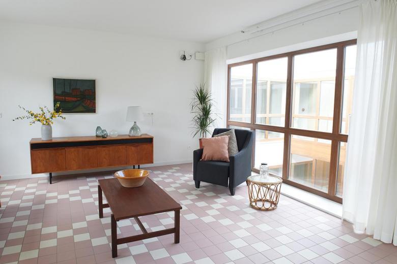 Area of a three-level home on Greece's Serifos Island that was carved into a rocky slope to protect its residents from strong northerly winds:...