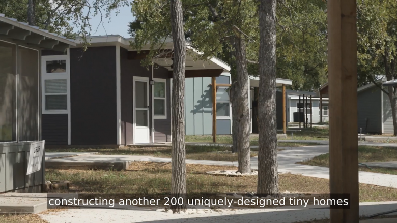 Size of the 500 minimalist and sustainable tiny homes for formerly homeless individuals at Community First! Village in Austin, Texas: 200...