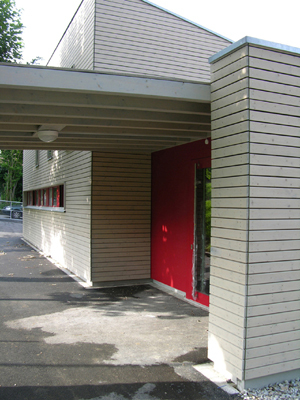 Der neue Kindergarten ist gemäss der übergeordneten Schulraumplanung auf dem bestehenden Hartplatz zwischen der Haargasse und der Turnhalle Zimmerberg erstellt worden. Die Situierung und das Projekt sind so vorgesehen, dass zu einem späteren Zeitpunkt ein zweiter Kindergarten dazugebaut werden könnte.
