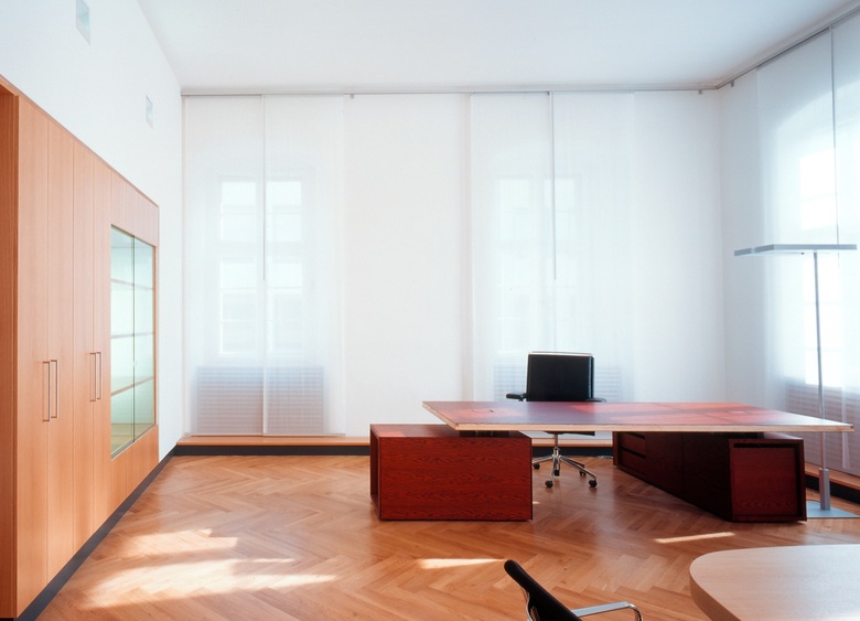 Das frühklassizistische Kollegiengebäude ist heute das einzige historische Gebäude am Luisenplatz und dient nach Kriegszerstörung und Wiederaufbau als Sitz des Regierungpräsidiums. Planungsziele waren die Neuordnung der räumlichen Situation, die Klärung der Wegebeziehungen, die Unterstützung des repräsentativen Charakters der Räumlichkeiten durch Verbesserung des Lichtkonzeptes und Neugestaltung der Möblierung, die Sanierung und der Erhalt der denkmalgeschützten Bausubstanz, die Neugliederung- und Ausstattung der Büroräume entsprechend heutiger Anforderungen an Arbeitsstätten.