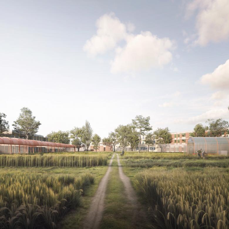 Das Konzept der Nachverdichtung orientiert sich an historischen Vorbildern der Gartenstadtbewegung und interpretiert diese unter den besonderen Anforderungen des Justizvollzugs neu. Es entstehen differenzierte Strukturen, die sowohl funktional als auch atmosphärisch wirken. Der Freiraum bildet das verbindende Element: Spaziergärten, Produktionsflächen und Aufenthaltsorte verzahnen sich mit der Architektur zu einem durchlässigen, landschaftlich geprägten Raumgefüge. Eine neue Hauptachse, Baumstrukturen und gezielte Blickbezüge stärken Orientierung, Aufenthaltsqualität und Sicherheit. So wird die Erweiterung nicht als Fremdkörper, sondern als integraler Teil einer lebendigen, wandlungsfähigen Gesamtanlage verstanden.