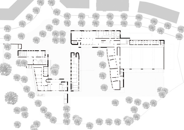 Der konzeptionelle Ausgangspunkt ist der Typus Schule als sozialen wie urbanen Raum. Das aus dem Städtebau entwickelte Ergebnis war demzufolge eine wenig kompakte, dafür jedoch differenzierte öffentliche Räume schaffende Gesamtfigur. Das Zentrum des Ensembles liegt mit dem zum neuen Stadtteil hin offenen Platz im Freien. An ihm liegen sämtliche Eingänge der Grundschule, der Kindertagesstätte und des Jugendhauses. Entsprechend der funktionalen Anforderungen an den ganztägigen Betrieb mit gemeinsam genutzten Einrichtungen sind die einzelnen Teilbereiche im Inneren des Gesamtkomplexes miteinander verbunden.