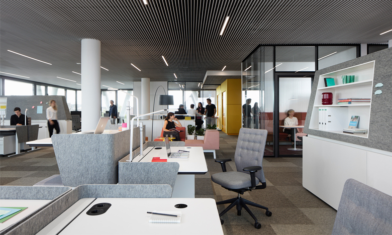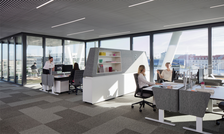 Innovative Arbeitsplatzgestaltung im Zentrum der Hauptstadt: Im neuen Netzquartier des Stromübertragungsnetzbetreibers 50Hertz vermittelt Kinzo auf einer Fläche von 24.000 m² gekonnt zwischen dem spannungsgeladenen Umfeld des Berliner Hauptbahnhofs, der markanten Architektur und den Bedürfnissen eines schnell wachsenden Großunternehmens. Einzel- und Teamarbeitsplätze werden mit großzügigen Mittelzonen und Loggien kombiniert, die den Mitarbeitern ein flexibles, non-territoriales und abwechslungsreiches Arbeitsumfeld in einer wohnlichen Atmosphäre bieten. Und mit den eigens für das Projekt entwickelten Leuchten und Akustikaufsätze schließt Kinzo den Kreis zu Form und Funktion.