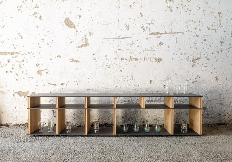 7172 ist ein modulares Möbelsystem aus Holz, das neben Beistelltischen, Bänken und Sideboards vor allem Regale und Raumtrennelemente für Wohnungen und Büros umfasst. Entwickelt wurde es von den Schreinern und Architekten Thomas Kandler und Robert Kern, die leidenschaftlich gern mit Holz arbeiten. „Ein Regal ist etwas Persönliches.“