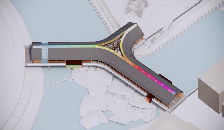 The inspiration of design comes from a local Qing Dynasty corridor bridge: Dragon and Phoenix Bridge. Corridor bridges are ancient Chinese bridges combining bridge and architecture, with passage in the middle and rest areas on both sides, effectively integrating transportation and non-transportation functions into one space.
