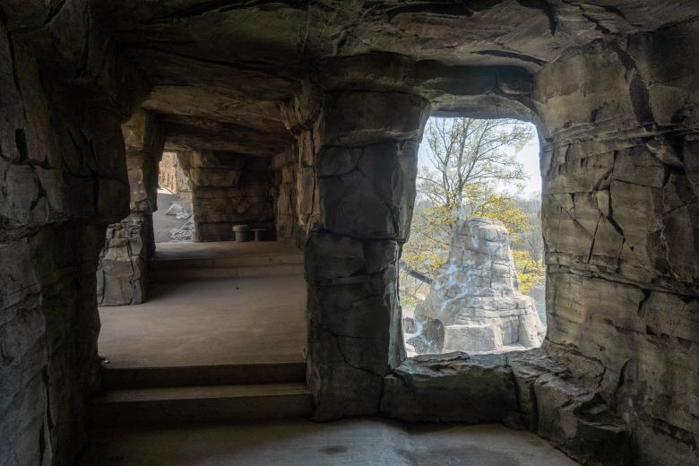 Der neue Pfad gewährt an mehreren Stellen den barrierefreien Einblick in die Gehege und führt den Besucher auf waldigen und felsigen Abschnitten schliesslich in einen Beobachtungstunnel in der neuen Felswand, von wo aus sich immer neue Einblicke in das Leben der Steinböcke ergeben.