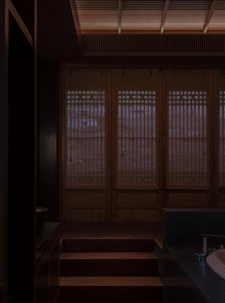 Guest rooms, loam walls, thatched roofs, wooden beams, all these features are clear in the western Sichuan building style of the hotel. In response to this, the use of artificial light is reduced indoors to reduce the brightness. However, considering the long-term urban living habits of modern people, designers still use decorative lights and indirect lighting to enrich the spatial hierarchy and give guests a comfortable state to feel the western Sichuan style.