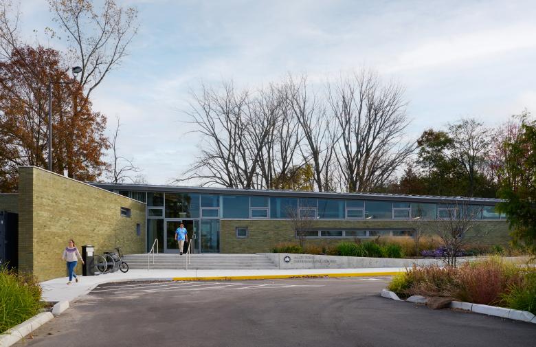 Upon entering the building lobby, visitors can take in a view of the forest. The entry also serves as the launching point for a network of nature trails that allow exploration of Alley Creek, Cattail Pond, and Windmill Pond.